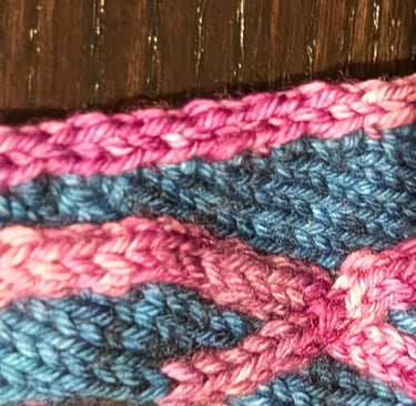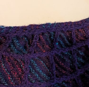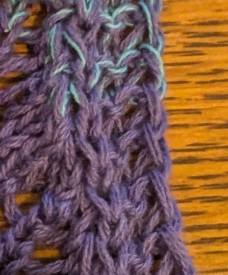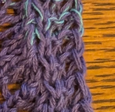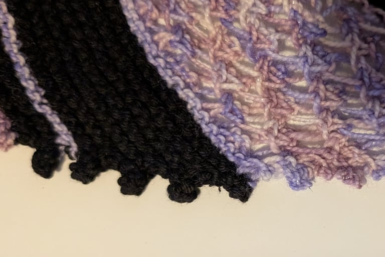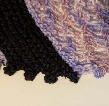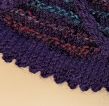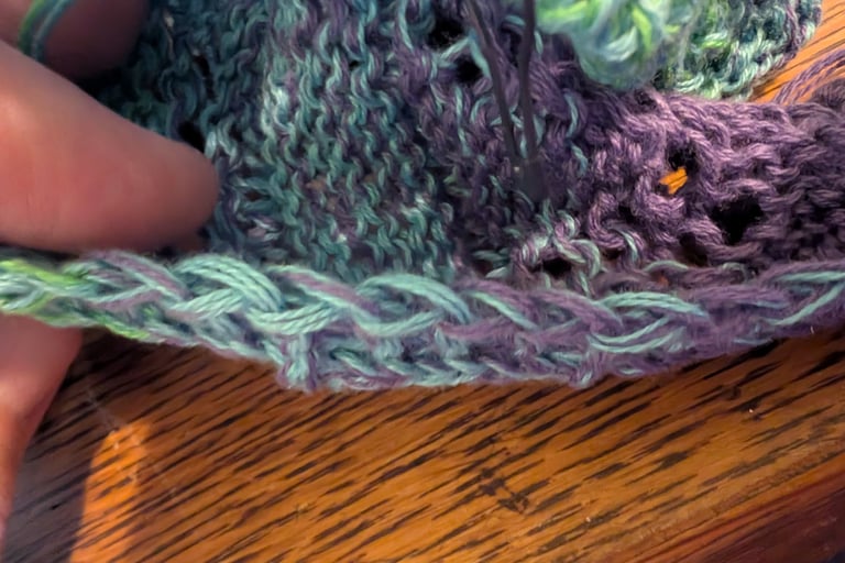 This one is a personal favorite of mine! I-cords can be added to any edge as you’re knitting the piece, or they can be applied after the fact. To knit an I-cord along the sides of your piece, add 3 stitches to either side, slip them purlwise with the yarn in front at the end of every row, then knit them when you start the next row. This pulls those stitches in to make the typical I-cord look, as shown in the first picture below. You can apply an I-cord to an edge after the fact by sewing it on or using DPNs to pick up and knit stitches together, but I prefer to use a Cordsmith. You can check out my video on I-cord edges with a Cordsmith here. The nice thing about applied I-cord edges is that you can make them in a contrasting color, as shown in the second picture below.